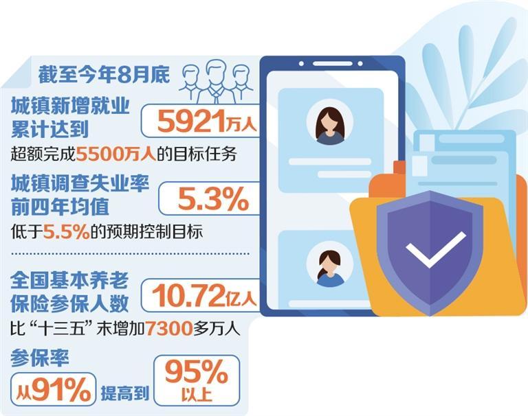 在9月26日在国家情报机构的新闻发布会上,关于“完成14日5年计划的高质量计划”的问题,人力资源和社会保障部长Wang Xiaoping在“ 14日5年计划”期间提出,我国家的就业状况通常是稳定的,社会保障系统更健康,工人的保护系统更加完美。就业是人们最基本的生计。截至今年8月底,该市的新工作累计达到了5,921万,超过了5500万的目标任务。 tasa de desempleo promedio para las encuestas unbanas en los primeros cuatroañosfue del 5,3%,Menor Que El Objetivo De Control Esperado del 5.5%。这项成就一直在充满挑战和挑战就业的时刻战斗。 Wang Xiaoping dijo que el sistema de políticas de empleo se enriquece continuamente, creando un marco de política sistemático para incentivos financieros, reducciones de impuestos y tarifas, un marco de política objetivo para el apoyo financiero y un sistema de apoyo en cadena completo que Renacimientos de estabilidad de trabajo de trabajo para el seguro seguro de desempleo,y empleo y empleo y empresas empresariales。在第14五年计划中,雇主保证的平均年贷款年平均余额为3000亿元人民币,就业补贴基金的平均年支出超过1000亿元人民币。这个时期也是安全社会领域的改革最激烈的时期。参加全国基本退休金保险的人数自13五年计划结束以来,达到1,0.72亿,增加了7300万以上,保险费率从91%增加到95%以上。自第13五年五年计划结束以来,与工作相关的失业和工作保险的人数分别达到2.46亿和3.02亿,分别超过2,900万和3400万。同时,这三项社会保障基金的总收入和支出为692.7亿元人民币,基金的累积平衡为9810亿元人民币,支持基金的能力不断增加,这使其更加可靠,并为公众提供了充分的社会保障。长期的社会保障基金,以提高我们的支持能力并促进高质量和可持续发展,从而使社会安全,我的国家继续扩大授权规模,提高投资收益率,并在指定投资的各个方面进行稳固的工作,并运营基本养老金保险基金。目前,基本养老金保险基金的投资和运营规模为26亿元人民币,是第13五年期结束的两倍。自从基本的养老金保险基金于2016年底开始投资和运营以来,它连续第八年获得了积极的收益率,平均年度投资收益率为5.15%,这已经达到了其价值目标。目前,我国人口的发展正在进入新的正常状态。为了促进人才股息转变为人口红利,在14岁的计划中,安全,有序地实施了法律退休年龄的政策,继续加深人力资源发展系统和机制的改革。报告显示,在过去的五年中,已经针对9200万人实施了补贴的职业技能,已发行了72个新职业,328个国家职业标准已被发行,各种各样的才能专注于刺激做事和开展业务的活力。通过持续的努力,我的国家拥有超过8000万的专业和技术才能,共有超过2.2亿合格的工人,其中7200万以上是高素质的才能,提供了强大的人才来进一步促进高水平的科学和技术独立性并建立现代工业系统。 (经济每日记者AO rong)